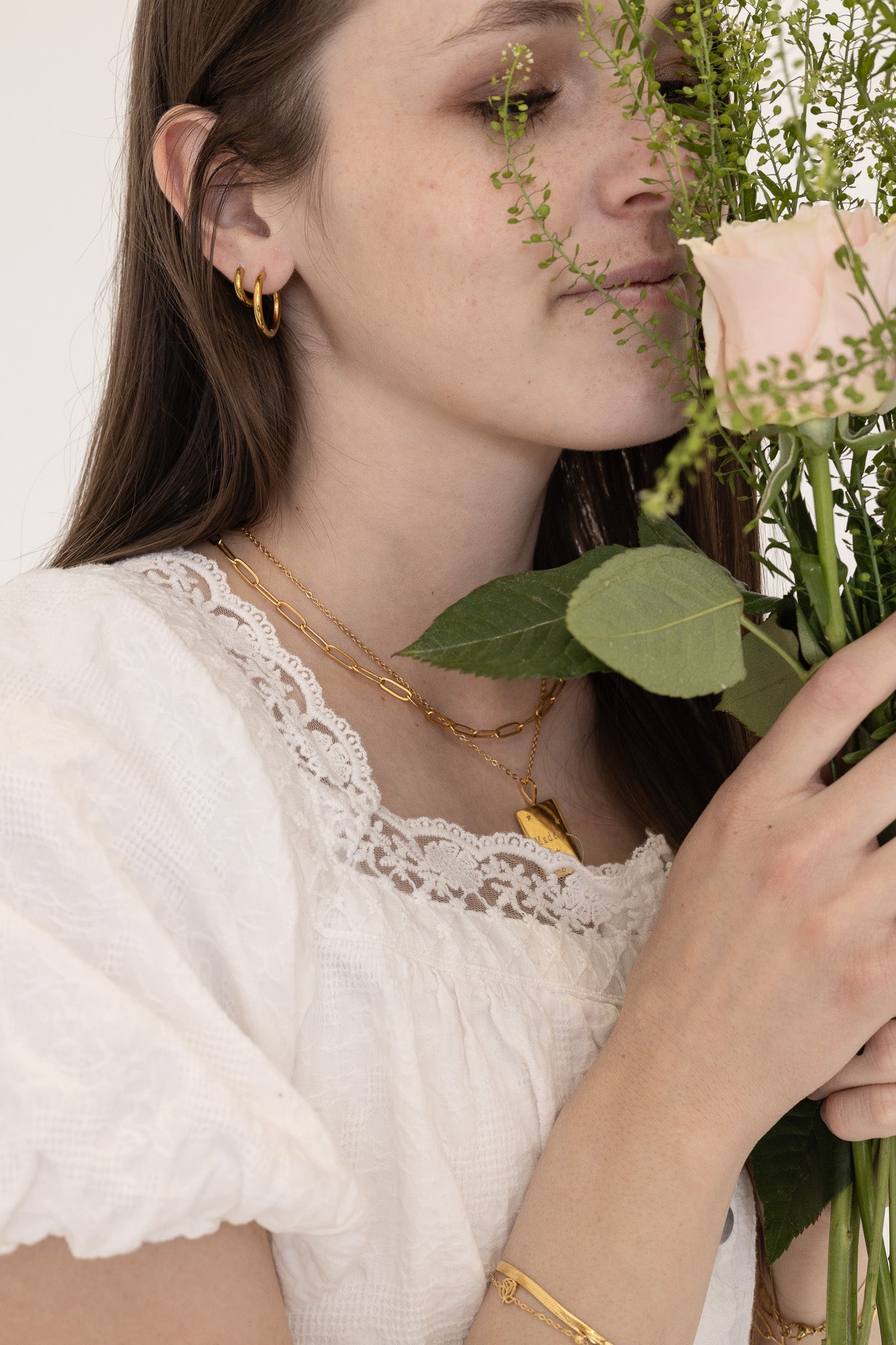 I often do not remove the earings from my second and third piercings. Not a problem with the lovely earings from Rose & Clay. The rose hoops lay flat on the front of my lobe and the post earings never stab because of the ball back.