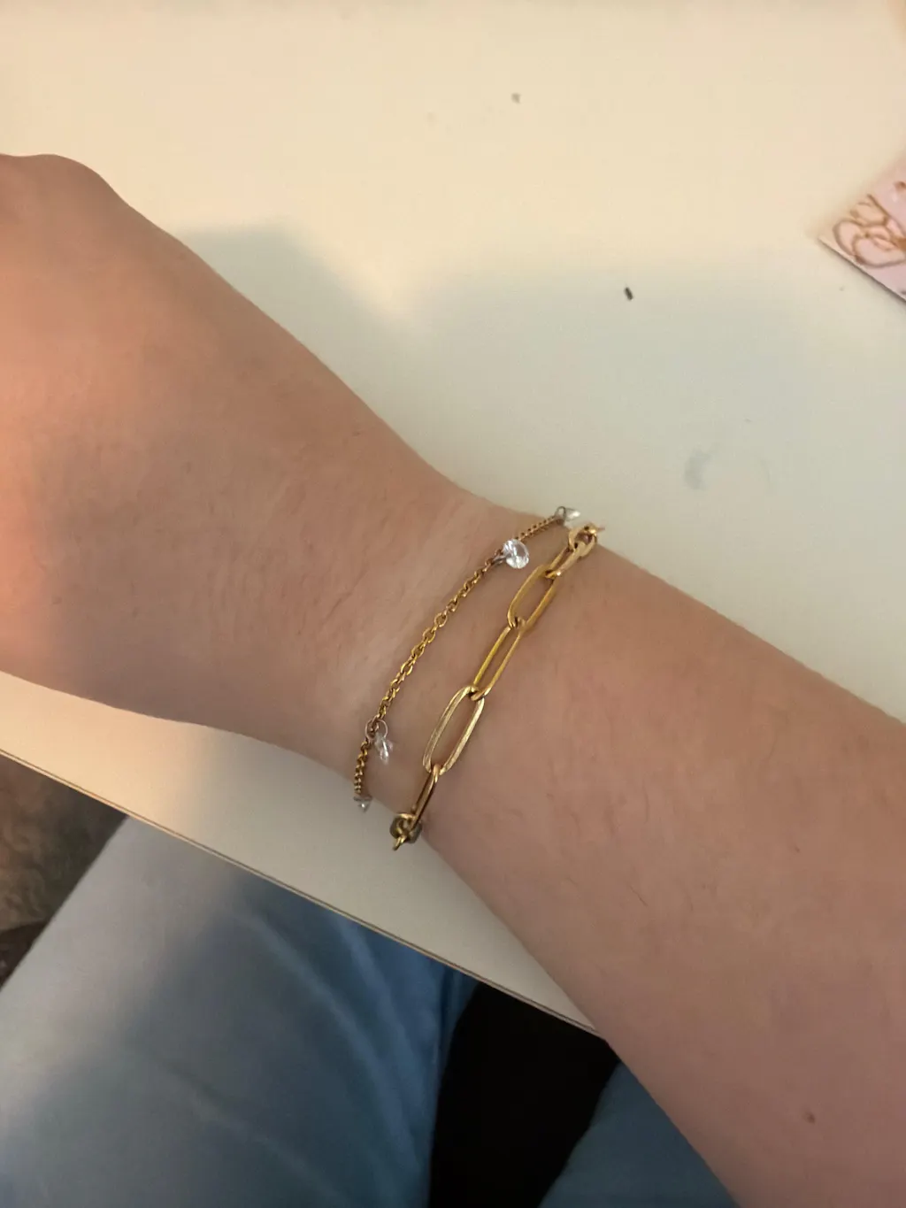 We are obsessed with this bracelet!! The chain style and charm are soooo cute and will look good with any outfit. If you are looking for a new bracelet, this is the one!